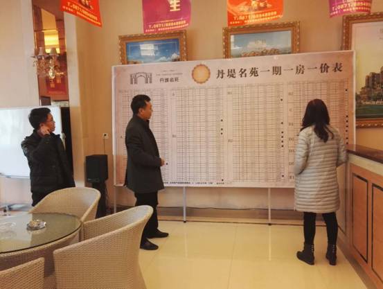 为进一步规范商品房销售价格行为,维护我县商品房价格市场秩序,促进房地产市场健康有序发展,12月6日,县发改经贸局和县住建局对凤家古镇、丹堤名苑、圣果树庄园、三溪温泉小镇的商品房销售明码标价情况进行了检查。