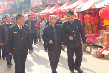 对县级相关单位的慰问结束后,县四班子领导还走访巡查了东风集贸市场年货一条街,城管局张局长就春节年货街规划设置等方面工作进行了汇报。县四班子领导对市场规划管理相关工作表示肯定,要求各部门继续加强市场规范管理,有效缓解县城区主要街道交通压力,推进安全生产和消防安全隐患的整改落实,丰富年货供应渠道,让市民群众欢度安全、文明、祥和的春节。(县城管局供稿)
