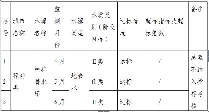 附表2018年第二季度禄劝县集中式饮用水水源水质状况表