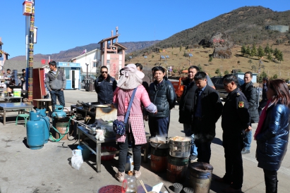 为规范旅游秩序,切实做好轿子山景区复核问题的整改工作,2019年12月17日,副县长王丕兴组织县文化和旅游局、县市场监督管理局、乌蒙乡和转龙镇到轿子山现场召开联席会议,重点围绕轿子山景区复核问题整改情况、新山垭口和四方景群众摆摊设点及向游客围追兜售旅游商品现象、元旦春节重大节假日期间安全隐患排查等工作做了详细部署安排,同时对景区现场展开了全面检查。