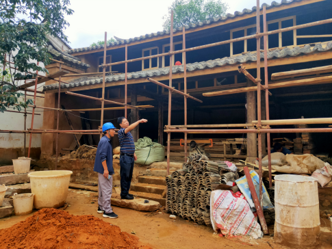 8月17日上午,县委党史研究室翠华镇督促指导毛主席长征路居旧址旁四合院修缮工程。