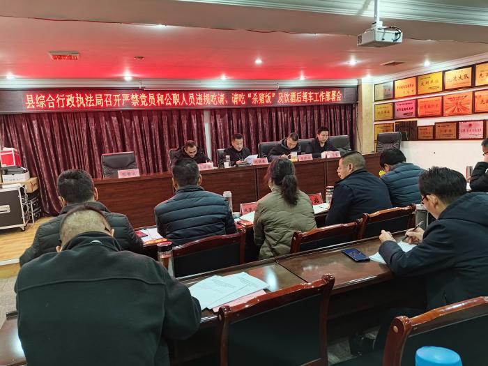 为进一步加强党风廉政建设,严明纪律规矩,根据中共禄劝彝族苗族自治县委办公室《严禁党员和公职人员违规吃请、请吃“杀猪饭”及饮酒后驾车的通知》要求,县综合行政执法局于12月16日上午组织全局党员干部及公职人员开展了一次专题学习会议,旨在强化纪律意识,确保队伍风清气正。