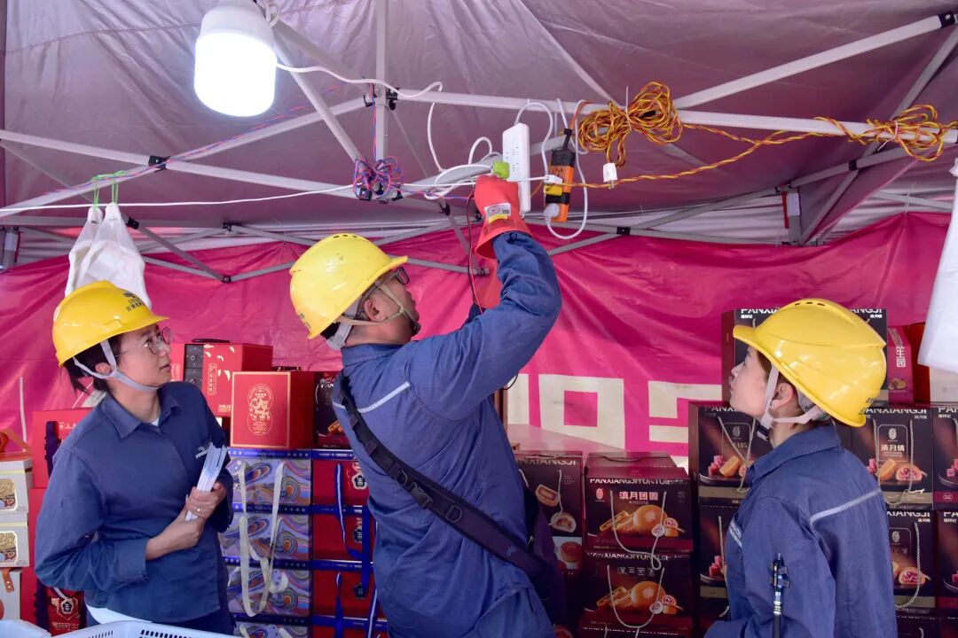 工作人员对沿街商铺、临时月饼摊的用电线路、开关插座、漏电保护装置等进行“拉网式”排查,针对节日期间临时用电增多、负荷攀升的特点,重点排查线路敷设是否安全规范,开关、插座接线是否安全及临时用电设备负荷情况等,对发现的老化线路、私拉乱接等隐患现场指导商户整改排除;向商户与市民发放宣传手册,讲解“人走电断”、大功率电器安全使用等用电安全常识,演示应急断电操作方法,确保商户安全可靠用电。