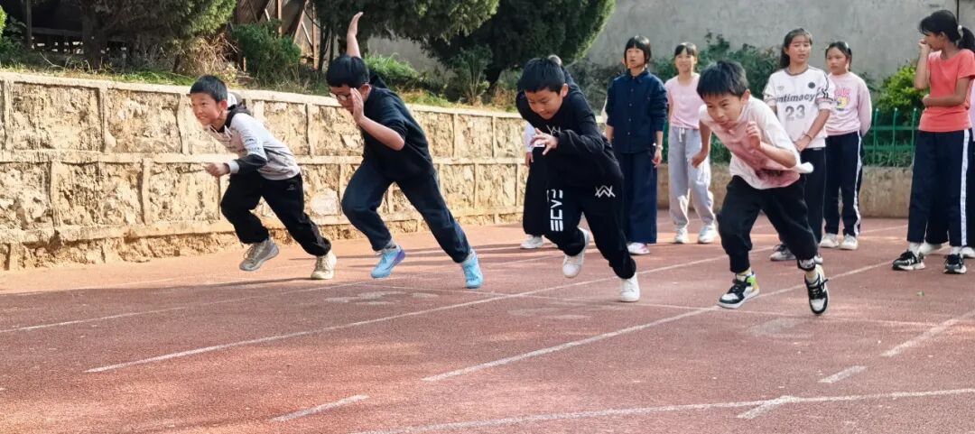 赛场上,小运动员们奋力拼搏、各展风采。短跑选手如离弦之箭,跳远队员纵身跃起划出优美弧线,乒乓球台前你来我往斗志昂扬;集体项目中更是高潮迭起,拔河比赛的呐喊响彻校园,接力跑默契传递鼓舞人心,长绳起伏间节奏明快,广播操动作整齐划一,展现出团结协作、昂扬向上的精神风貌。