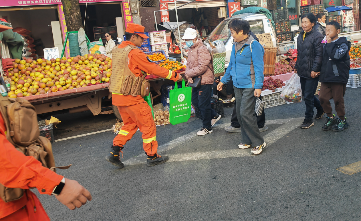 为增强宣传实效,活动准备了多样化宣传品。工作人员向过往群众发放印有防火标语的环保袋、钱夹纸、作业本等实用物品,同时现场派发《森林草原防火户主责任书》《入山通知书》等宣传资料,累计发放各类宣传物料1350余套。与此同时,森林防火车沿县城主要街道及周边村寨循环巡查,通过高音喇叭滚动播放昆明市近年森林火灾案例和防火法律法规,以“以案释法”方式警示群众严守用火规定。宣传小分队还深入集市摊位,向商贩、群众逐一发放宣传物品,讲解林区周边用火安全注意事项,引导商户主动参与防火宣传,形成“铺面联动”的宣传格局。