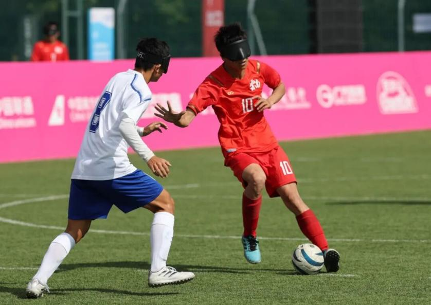 盲人足球赛场,禄劝籍运动员魏建森、赵祥组成的参赛队伍展现顽强斗志与默契配合。面对视力障碍带来的挑战,队员们凭借听觉感知赛场、战术协同攻防,在多轮激烈角逐中过关斩将,最终荣获团体铜牌。