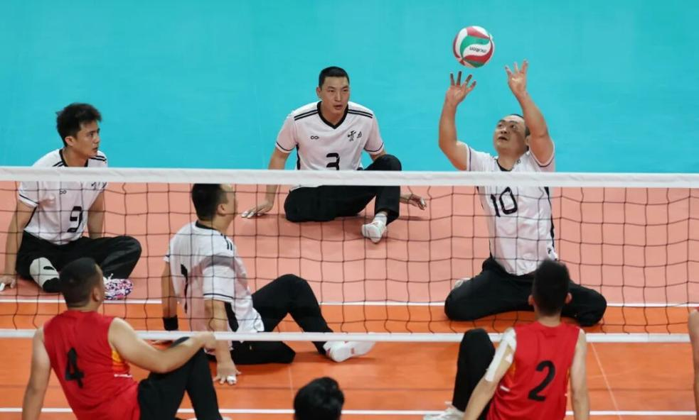 坐式排球项目中,禄劝籍运动员黄飞鸿与队友并肩作战,在广州赛区的赛场上角逐。他们以坚韧的毅力克服身体不便,凭借精准传球、果断扣杀与严密防守,在强手如林的较量中稳扎稳打,最终收获团体银牌,展现了团队协作的强大力量与永不言弃的竞技风采。