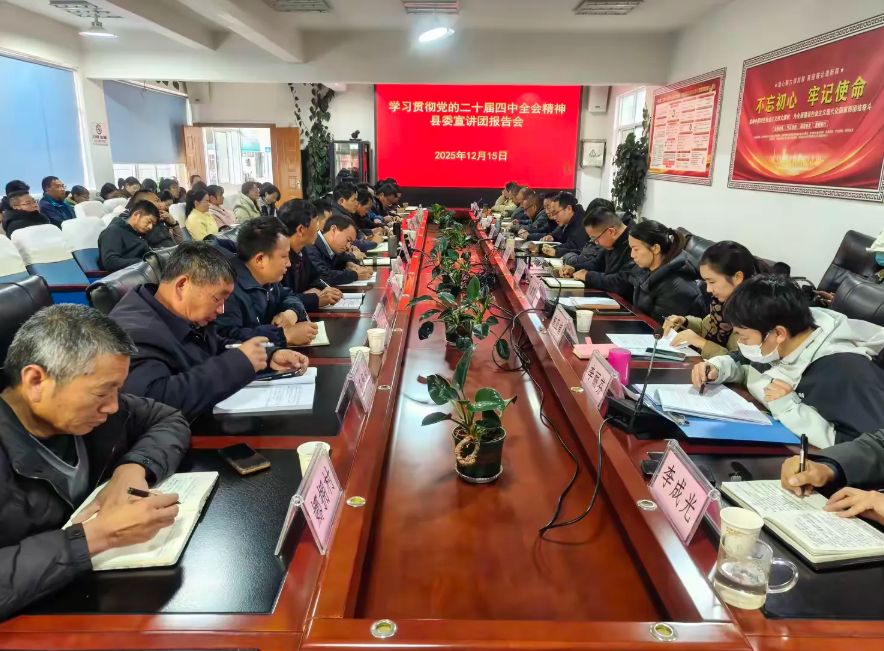 12月15日,县委宣讲团成员、县委党校常务副校长李迎春到撒营盘镇开展学习贯彻党的二十届四中全会精神专题宣讲。镇党政班子成员、全体干部职工、各村党组织书记、驻村工作队员参加会议。