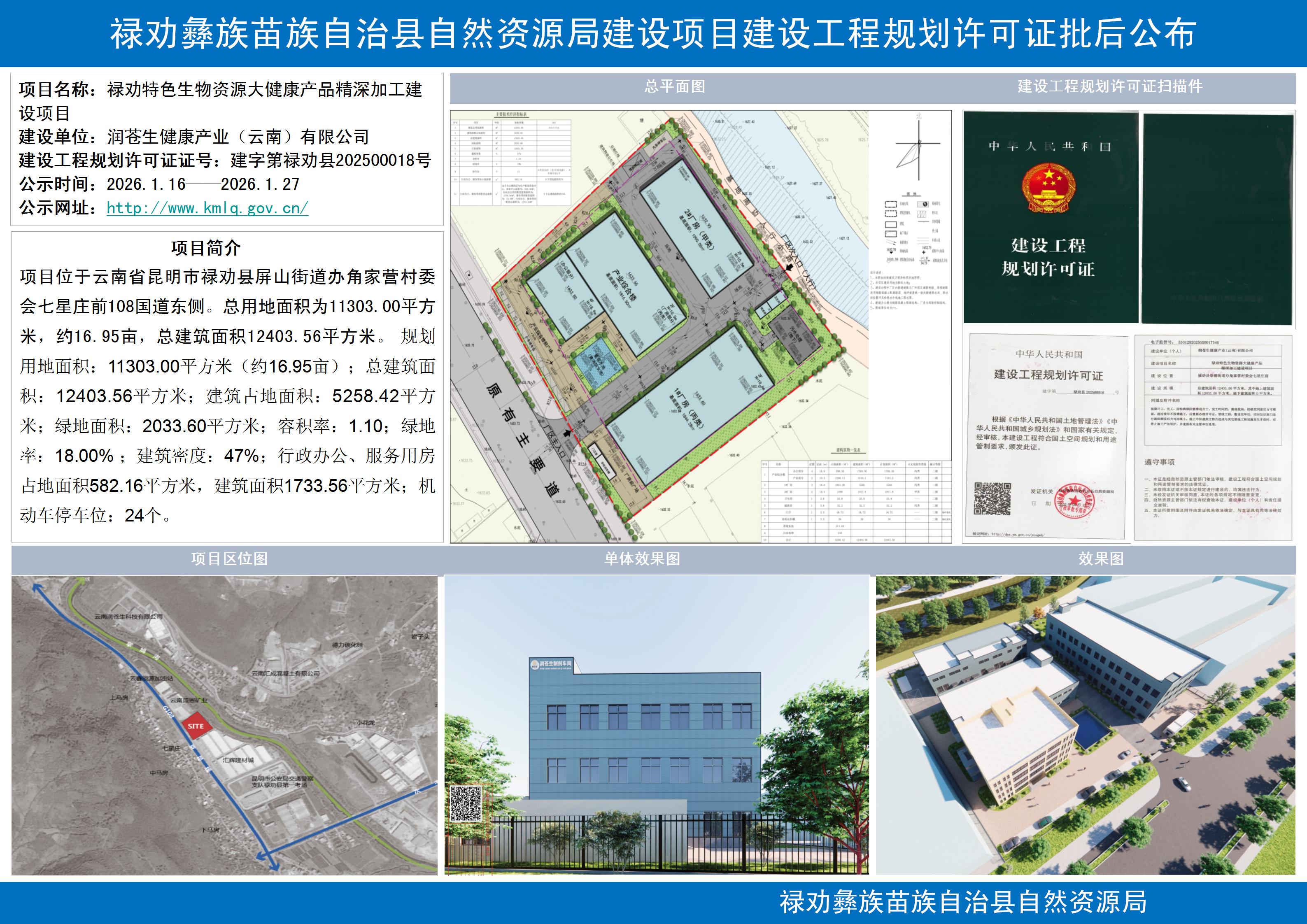 禄劝特色生物资源大健康产品精深加工建设项目建设工程规划许可批后公布
